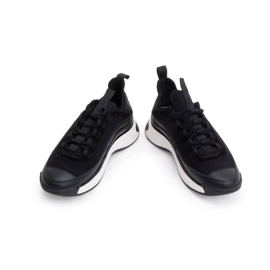 Black Calfskin Neoprene Interlocking CC Logo Sneakers